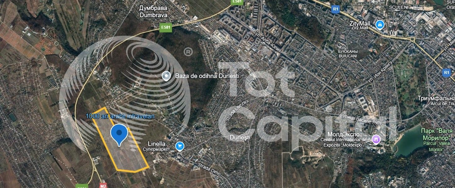Spre vânzare teren arabil cu suprafață 1000 ari arabil intravilan Durlești din masiv de 40 ha(cu posibilitate de extindere) cu posibilitate de trecere in construcție, zona rezidențiala de case locative cu amplasare strategica margini duse cu or. Chișinău cu rețele lumina apa, gaz in apropiere, oportunitate unica de a investi inteligent împreuna cu compania totcapital.md.