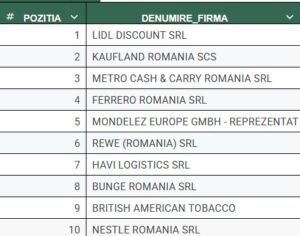 În rest, în clasament mai este prezent Ferrero, pe locul patru, producător cu afaceri importante în România, dar fără bază de producție locală. Ferrero, grup italian cunoscut pentru branduri precum Nutella și Kinder, a raportat în 2024 afaceri de peste 1,5 miliarde de lei.
