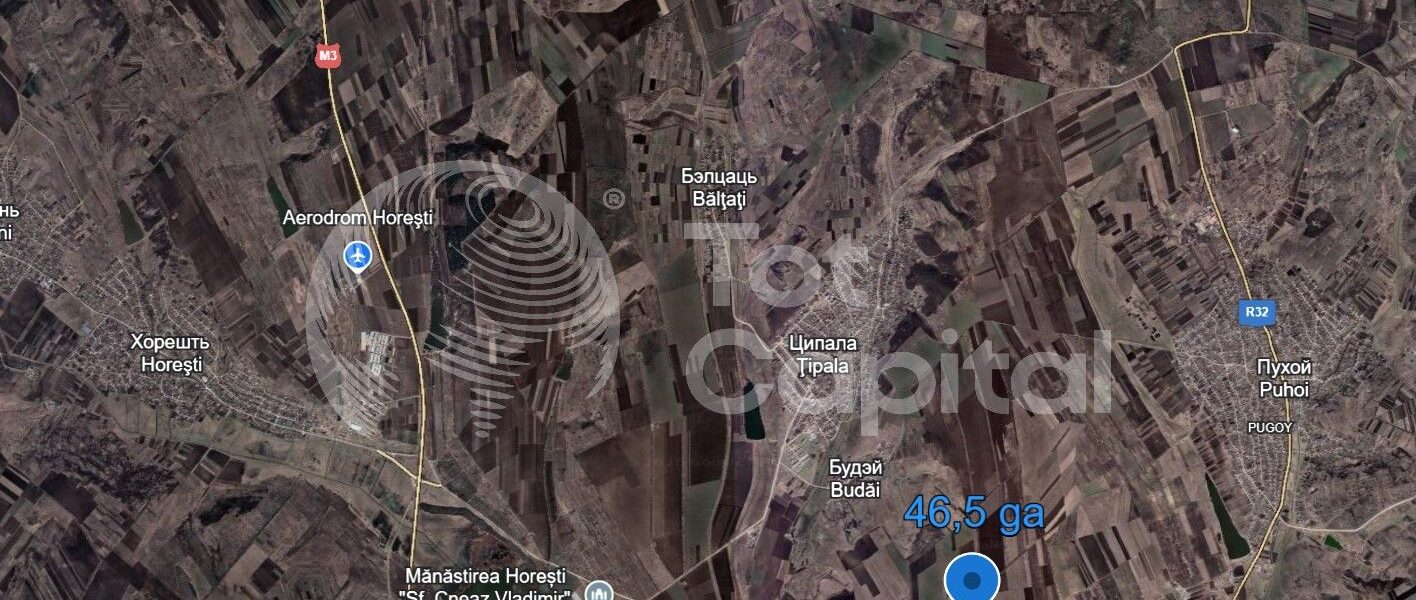 Suprafaţa 46,5 ha consolidat, bonitate 80% , teren drept 200m înălțime de la nivelul mari ferit de îngheț!
